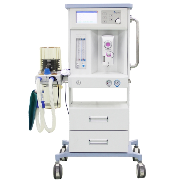 自1846年朗寧首先應(yīng)用乙醚麻醉以來(lái),吸入麻醉已日臻完善。所謂麻醉是指使有機(jī)體全部或局部暫失去知覺(jué),以便進(jìn)行外科手術(shù)治療的方法。麻醉的方法有多種,如針刺麻醉、注射麻醉及吸入麻醉等?,F(xiàn)代藥理學(xué)的發(fā)展,科學(xué)技術(shù)的進(jìn)步,特別是電子計(jì)算機(jī)技術(shù)的應(yīng)用,更使現(xiàn)代吸入麻醉的水平大大提高。吸入麻醉易于控制、安全、有效。是當(dāng)前醫(yī)院進(jìn)行手術(shù)時(shí)的首選。麻醉機(jī)就是利用吸入麻醉方法進(jìn)行全身麻醉的儀器。 麻醉機(jī)是通過(guò)機(jī)械回路將麻醉藥送入患者的肺泡,形成麻醉藥氣體分壓,彌散到血液后,對(duì)中樞神經(jīng)系統(tǒng)直接發(fā)生抑制作用,從而產(chǎn)生全身麻醉的效果。目前醫(yī)院使用全身麻醉的方法仍是以吸入麻醉為主?,F(xiàn)代麻醉機(jī)正朝著智能化、集成化系統(tǒng)發(fā)展,各部件組合協(xié)調(diào)、靈活、可靠,結(jié)構(gòu)緊湊、合理,使用界面清晰友好,操作方便快捷。下圖這款是普朗醫(yī)療生產(chǎn)的一款麻醉呼吸機(jī)。特點(diǎn)如下: