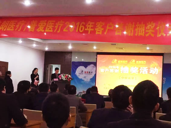 隨著高端醫(yī)療健康產(chǎn)業(yè)的不斷創(chuàng)新,普朗醫(yī)療/普愛醫(yī)療一直把握時(shí)代先機(jī),引領(lǐng)者國產(chǎn)醫(yī)療器械健康產(chǎn)業(yè)的潮流前端。普朗醫(yī)療/普愛醫(yī)療為感謝廣大新老客戶的信任與支持,2016年春暖花開之際,特舉辦了每年一屆的客戶答謝抽獎(jiǎng)活動(dòng)。 本次活動(dòng)普朗醫(yī)療/普愛醫(yī)療高層領(lǐng)導(dǎo)格外重視,董事長劉金虎先生親臨現(xiàn)場為現(xiàn)場客戶牟福,其他各子公司總經(jīng)理也是專程到抽獎(jiǎng)現(xiàn)場助興。