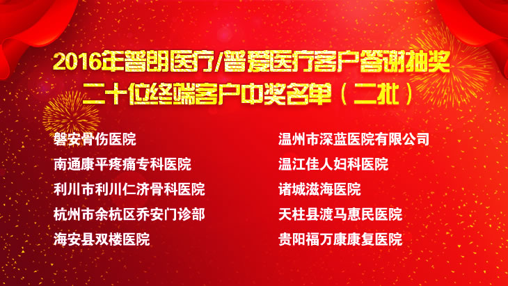 普朗醫(yī)療/普愛醫(yī)療2016年客戶答謝抽獎(jiǎng)公布