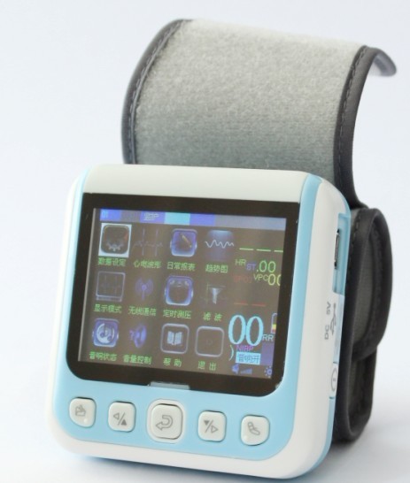 腕機產品特點: 1、超便攜的設計:尺寸只有180×120×35mm,重量只有0.5kg。配合長效鋰電池可支持長時間戶外監(jiān)護。 2、GSM遠程無線通信系統,能將采集到的心電,血壓,血氧,呼吸,脈搏,體溫等各種信息進行遠程傳輸,實時修改監(jiān)護儀數據,遙測控制血壓,實時信息傳輸顯示,為患者在第一時間內贏得寶貴的救治機會。 3、七導聯心電顯示,在監(jiān)護和診斷模式下,都具有擴展低頻響應,提供正確的三通道ST段測量分析功能和心律失常分析功能。 4、新型的上升沿測血壓方法,具有自動識別成人,兒童,新生兒的血壓測量范圍,并能顯示實時血壓波形,測壓時間短,受壓力輕,患者感到測血壓全過程的舒適。 5、真人語音報警和語音報數功能,擴展了監(jiān)護儀只能通過視覺了解監(jiān)護情況的局限性,醫(yī)務人員可以更及時了解病人監(jiān)護情況,更專注工作,提高護理效率和監(jiān)護質量。提高產品復雜環(huán)境下的實用性。 6、儀器后面可調節(jié)式后架和預留的螺口方便將儀器擺放在桌面,掛在床邊,固定在墻上。