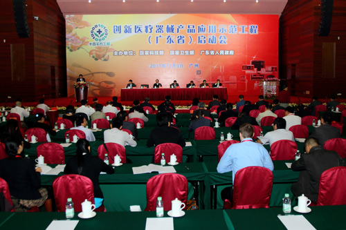 為提高全民健康水平,加快培育醫(yī)療器械戰(zhàn)略性新興產(chǎn)業(yè),讓創(chuàng)新成果更好地服務(wù)于醫(yī)療衛(wèi)生體系建設(shè)、保障醫(yī)療衛(wèi)生體制改革的順利實(shí)施,讓科技成果更好地惠及廣大公從,2011年11月9日,科技部、衛(wèi)生部和廣東省人民政府在廣州白云國(guó)際會(huì)議中心聯(lián)合舉辦了國(guó)家創(chuàng)新醫(yī)療設(shè)備產(chǎn)品應(yīng)用示范工程(廣東省)啟動(dòng)會(huì)??萍疾客鮽ブ懈辈块L(zhǎng)、衛(wèi)生部劉謙副部長(zhǎng)、廣東省人民政府宋海副省長(zhǎng)出席大會(huì)并作重要講話。廣東省科技廳李興華廳長(zhǎng)作廣東示范工程實(shí)施情況的工作報(bào)告。衛(wèi)生部科技教育司何維司長(zhǎng)、廣東省衛(wèi)生廳陳元?jiǎng)冱h組書(shū)記,國(guó)家醫(yī)療器械產(chǎn)業(yè)技術(shù)創(chuàng)新戰(zhàn)略聯(lián)盟代表,重慶、遼寧、浙江、江蘇等省市科技廳、衛(wèi)生廳代表,廣東省各地市科技局、衛(wèi)生局的負(fù)責(zé)同志,國(guó)家及廣東省醫(yī)療器械公司代表,廣東示范醫(yī)療機(jī)構(gòu)代表以及新聞媒體等共約300人參加了會(huì)議。啟動(dòng)會(huì)由科技部社會(huì)發(fā)展科技司楊哲副司長(zhǎng)主持。